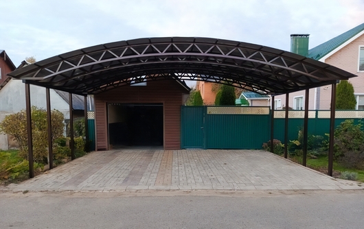 Арочный навес с поликарбонатом для стоянки авто в загородном доме Арт-672
