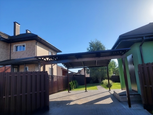 Двускатный навес с крышей из профлиста для загородного дома Арт-698