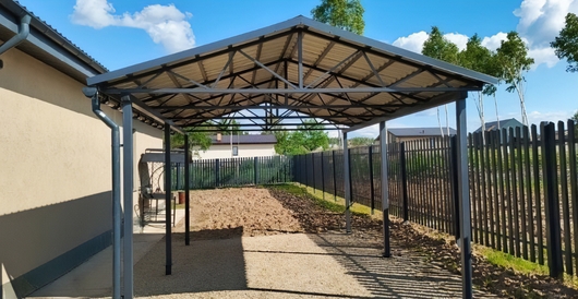 Двускатный навес с профлистом для установки на дачном участке Арт-722