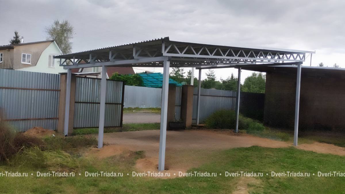 Односкатный автомобильный навес из профнастила серого цвета Арт-711
